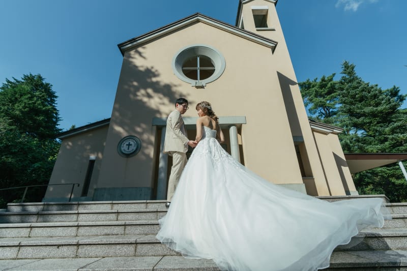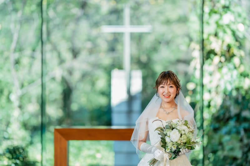 顔周りの印象も変えて、式場撮影ようにベールとグローブもつけました。