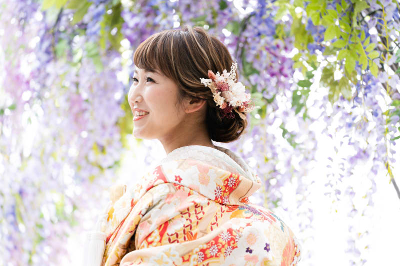 色打掛とお嫁さんの雰囲気に合わせてドライフラワーを合わせてみました。