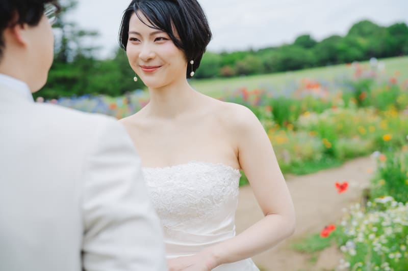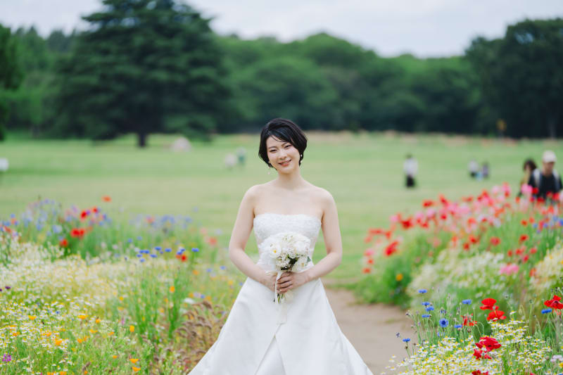 今の時期はブーケガーデンにて様々な色味のお花たちと撮影することが出来ます^^