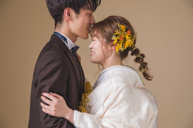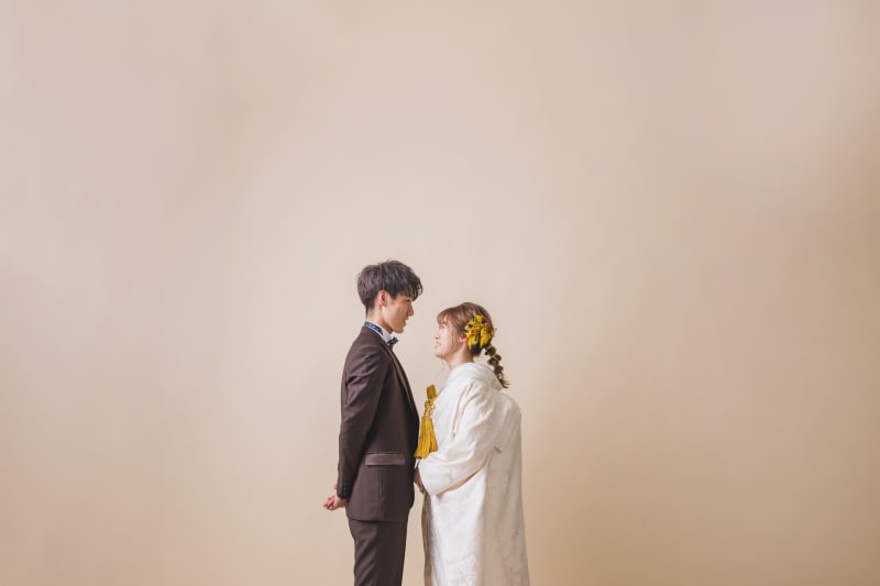 立川店の本格的な茶室スタジオで撮影する、和装の結婚写真