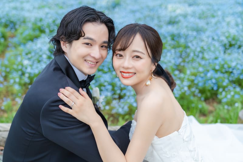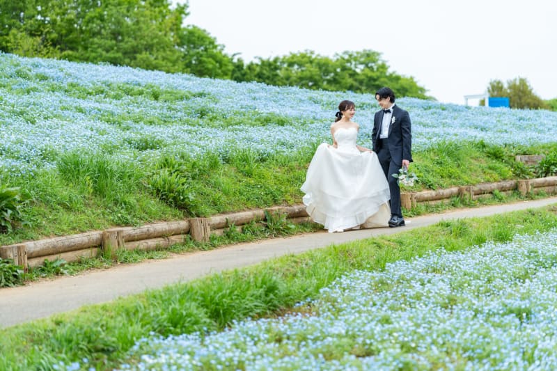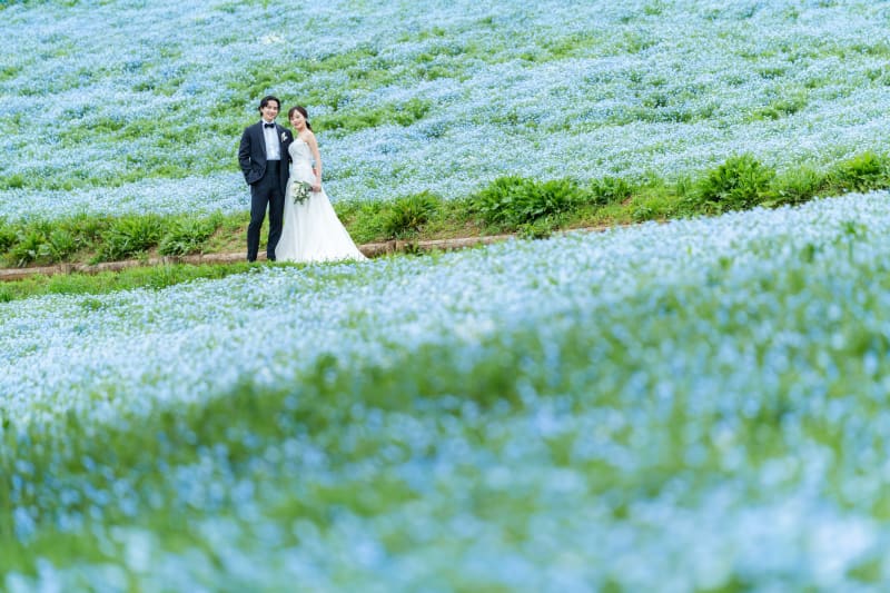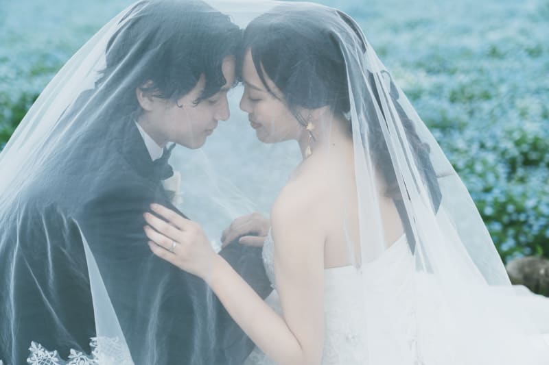 ネモフィラ背景にベールなど使って。