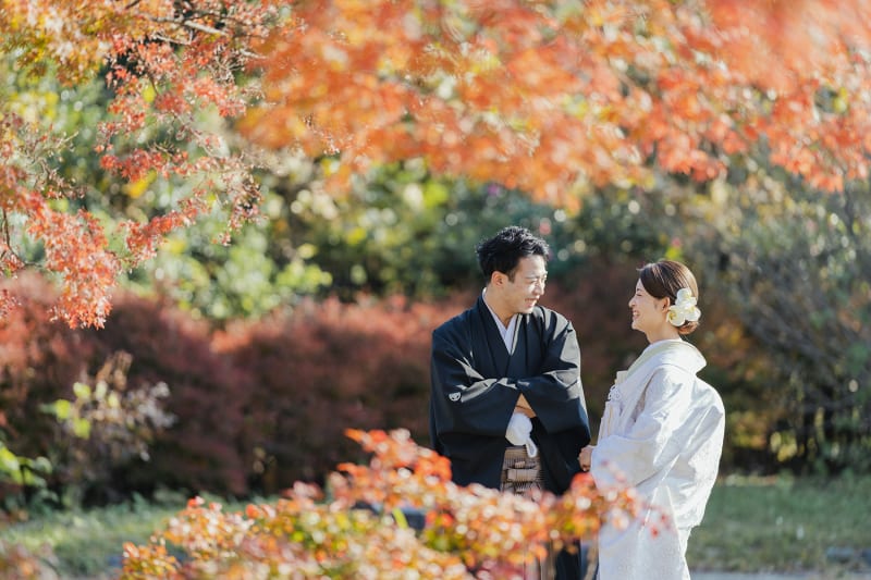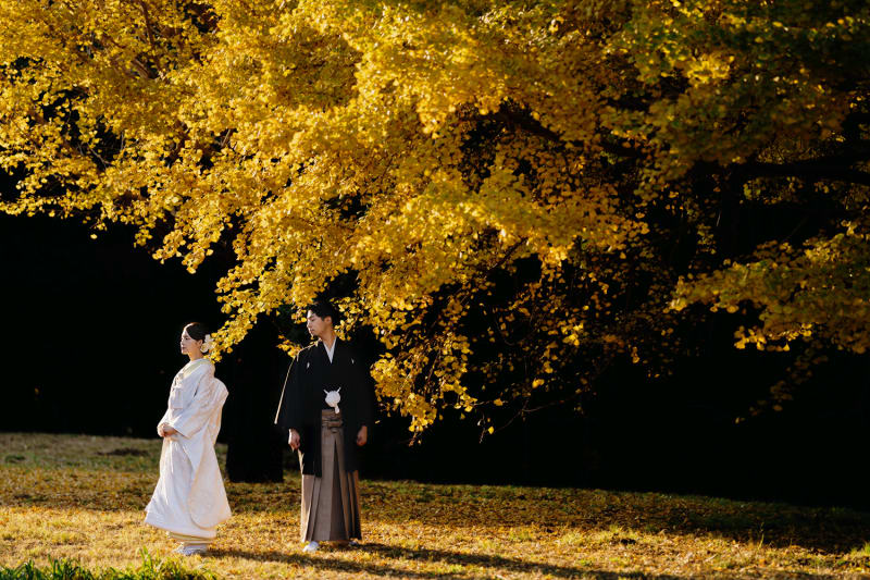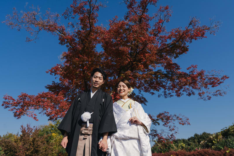 秋の昭和記念公園は前撮りにぴったりな紅葉、イチョウ、緑、お花と