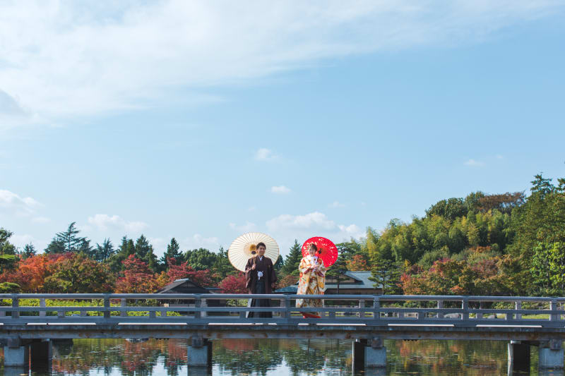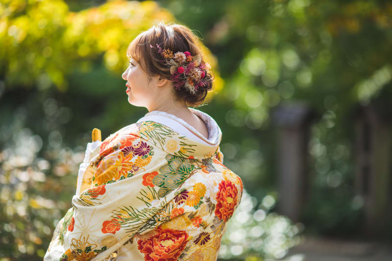 ロケーション撮影後、屋内庭園スタジオに戻って白無垢の撮影。