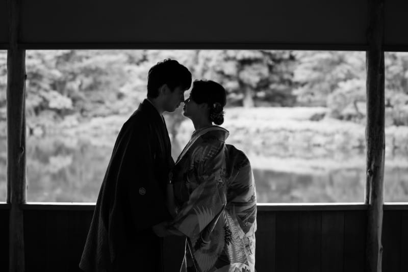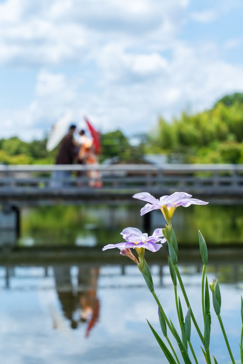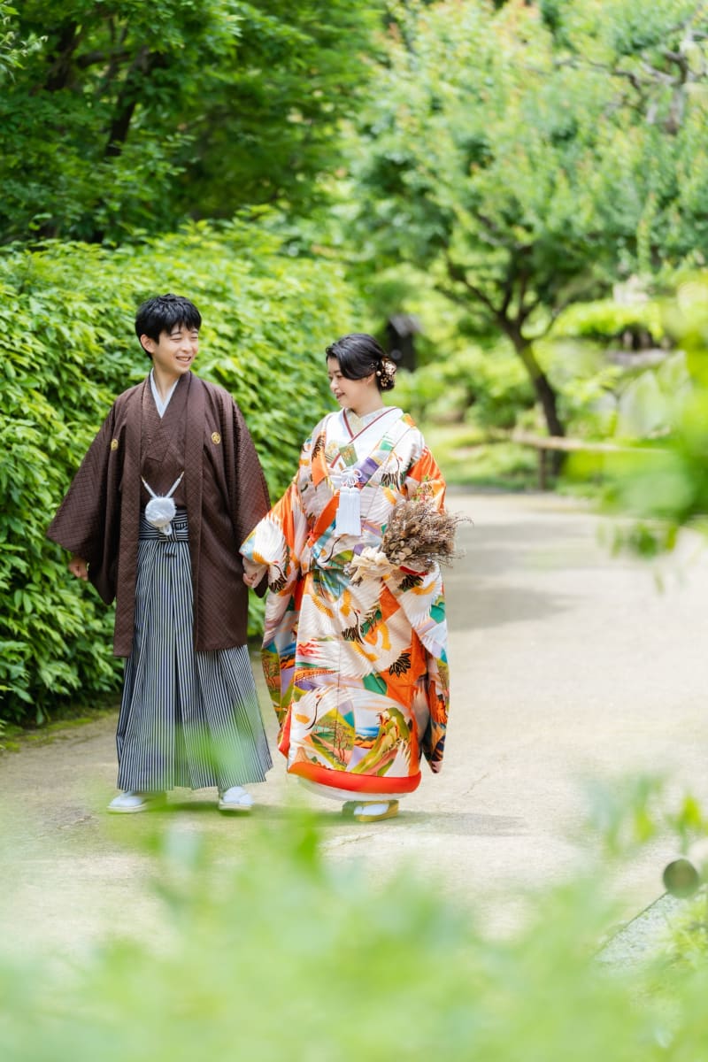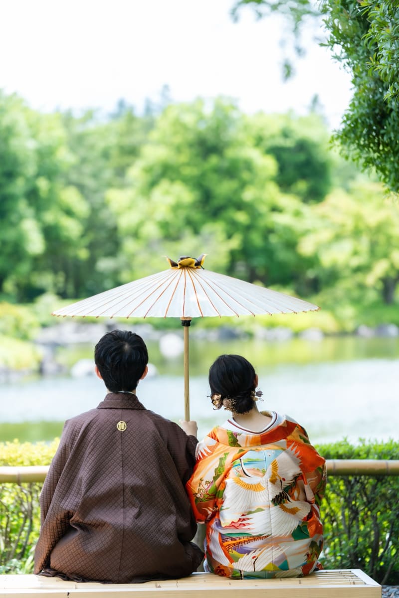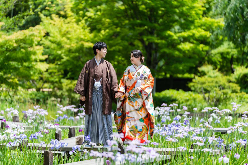 和装のロケーションは昭和記念公園にある、日本庭園が大人気ですね、