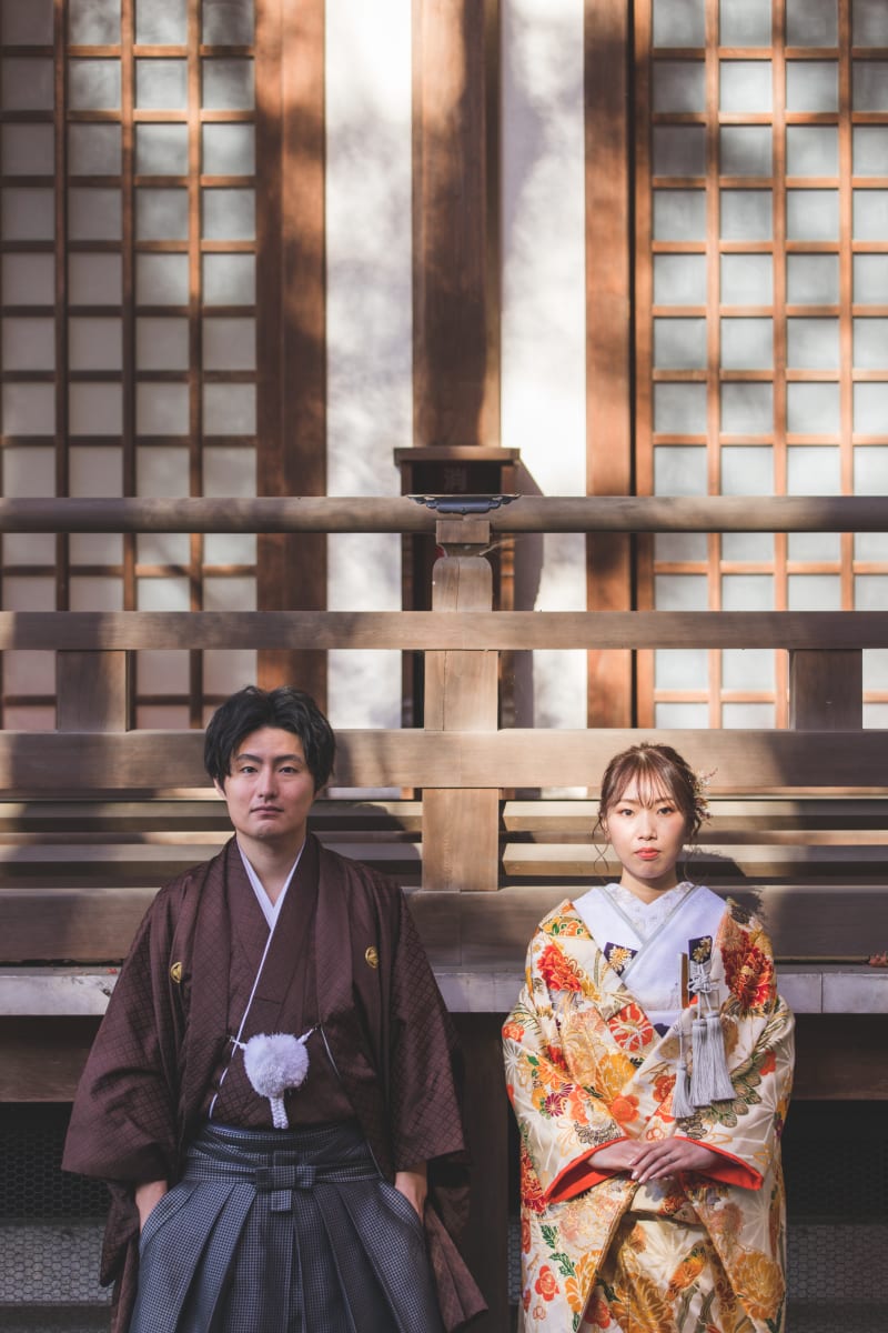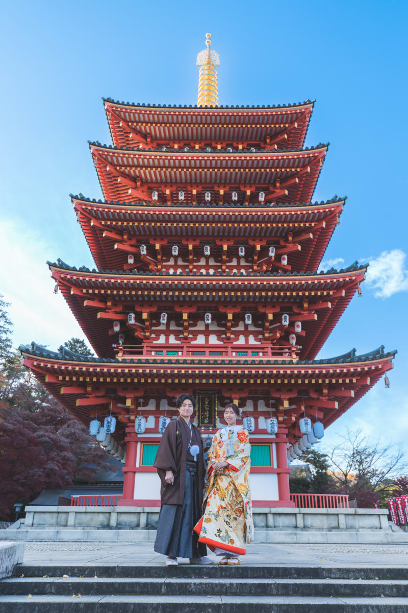高幡不動尊ではシックなイメージとプラスでおしゃれな建物ショットも一緒に撮ることが可能です!