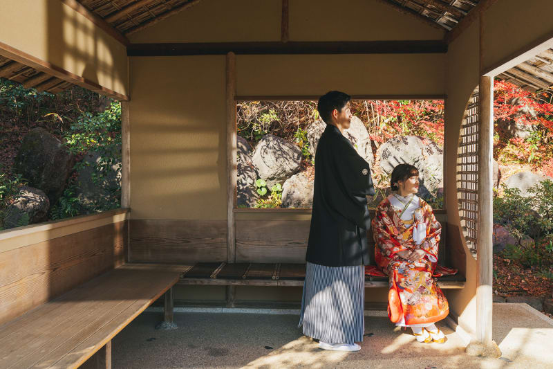 東屋の中に差し込む光はストロボで作っています。自然光が入ってきたかのように綺麗です。