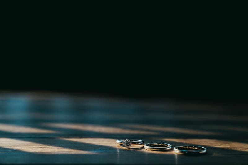 二人の指輪をおしゃれに撮影。光の具合がとても素敵です。