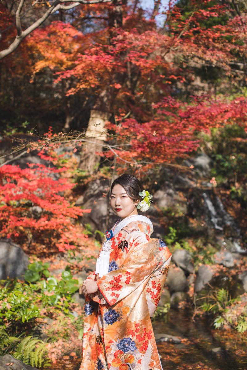 昭和記念公園の中にある日本庭園はどこから撮っても和装にぴったりな撮影スポットです。