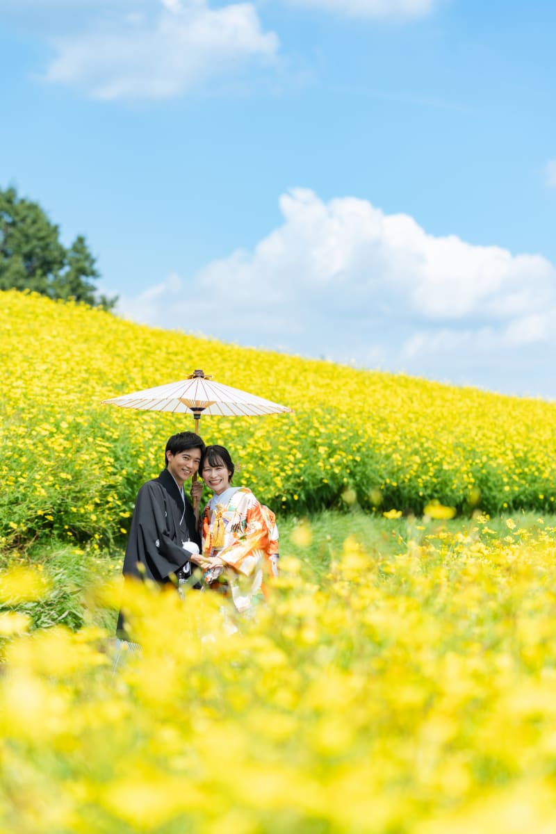 無事に黄色コスモスと撮影ができました。