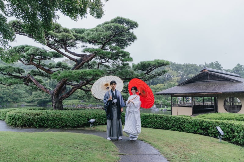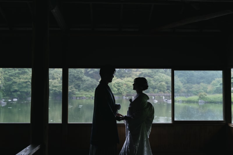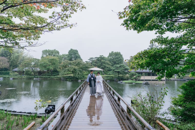 実は雨の日ならではの魅力を持った和装ロケーションのウェディングフォトが楽しめるのです。