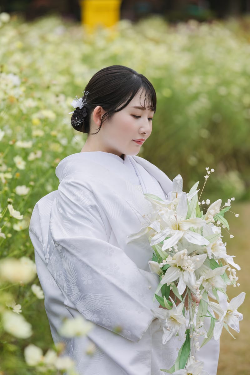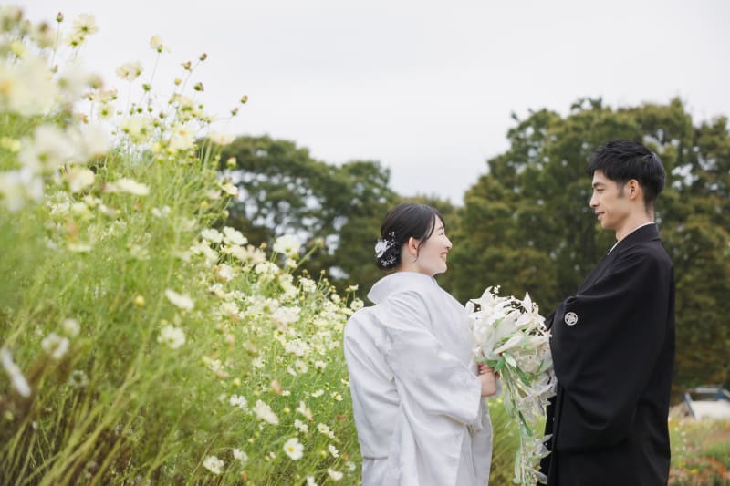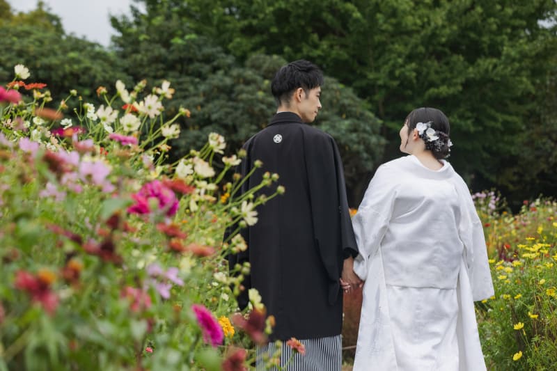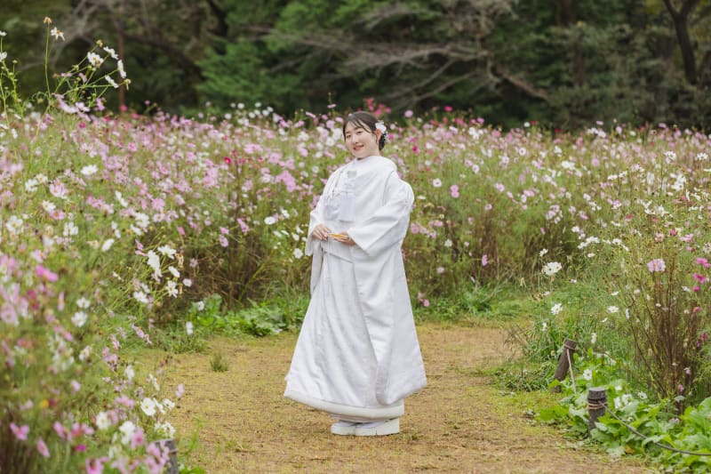 和装だと日本庭園エリアが人気ですが、お花畑で撮ってもかわいいです!