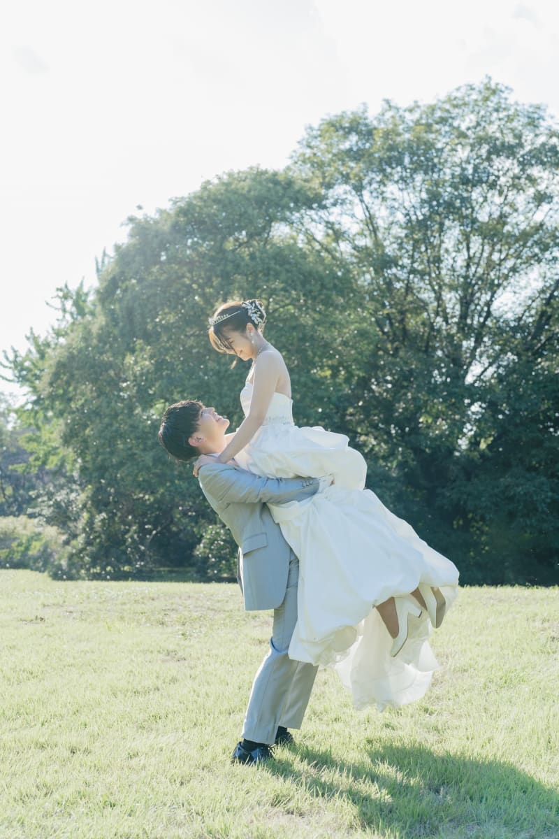 シャボン玉は、ウェディングフォトに遊び心を加える素敵なアイテムです。