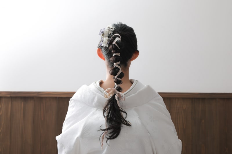 王道な和装スタイルももちろん素敵ですが、伸ばしてきた髪を活かしことができて、