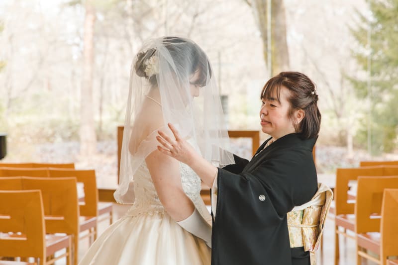 お父様とバージンロードを歩いたり、お母様によるベールダウンのセレモニーなど素敵な瞬間もしっかり残せます。