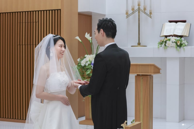 入場シーンから、指輪の交換、ベールアップなどプチ挙式をしました!