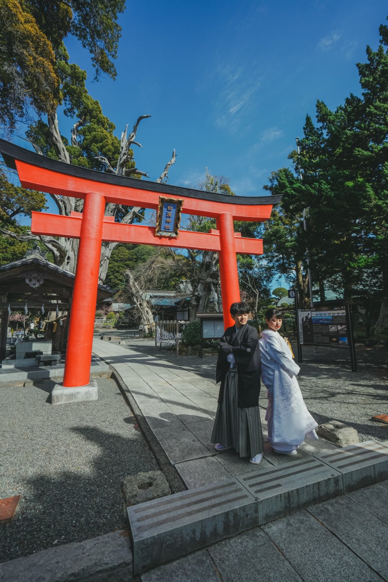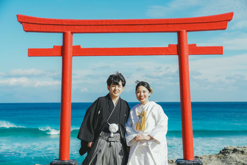 岩と鳥居と海と空とお二人、素敵すぎます、、!