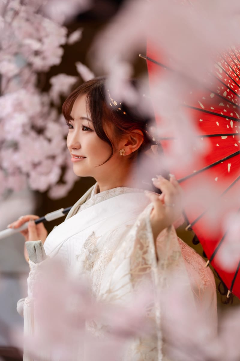 ロケーションの撮影の際は、新婦様が常に着物を持ってあるかないといけないので、