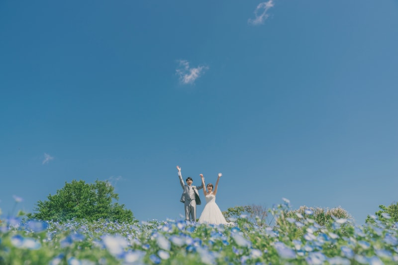 青空にネモフィラ。さわやかな1ショット。