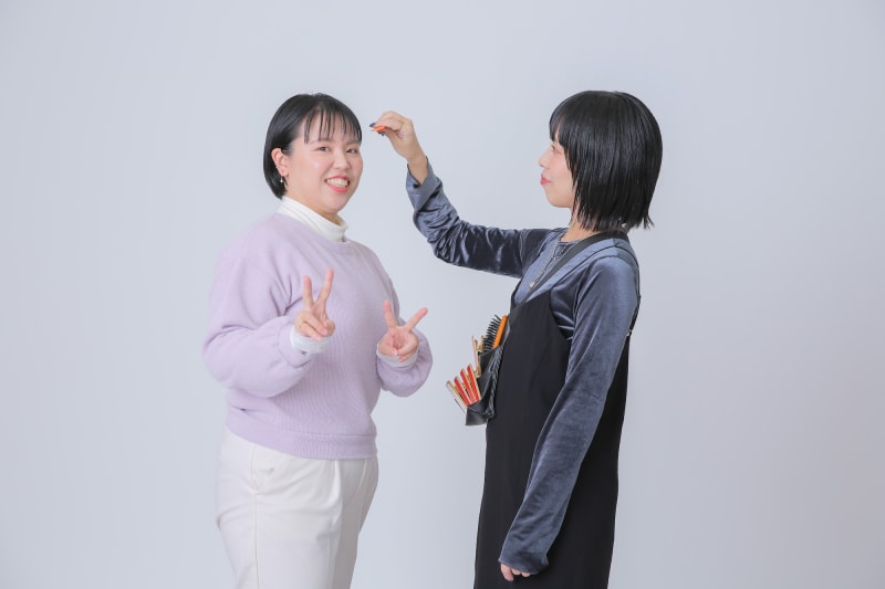 ・お客様に会ったその瞬間、お顔に対しての色合わせを意識し、お客様にも確認しながらメイクしています。