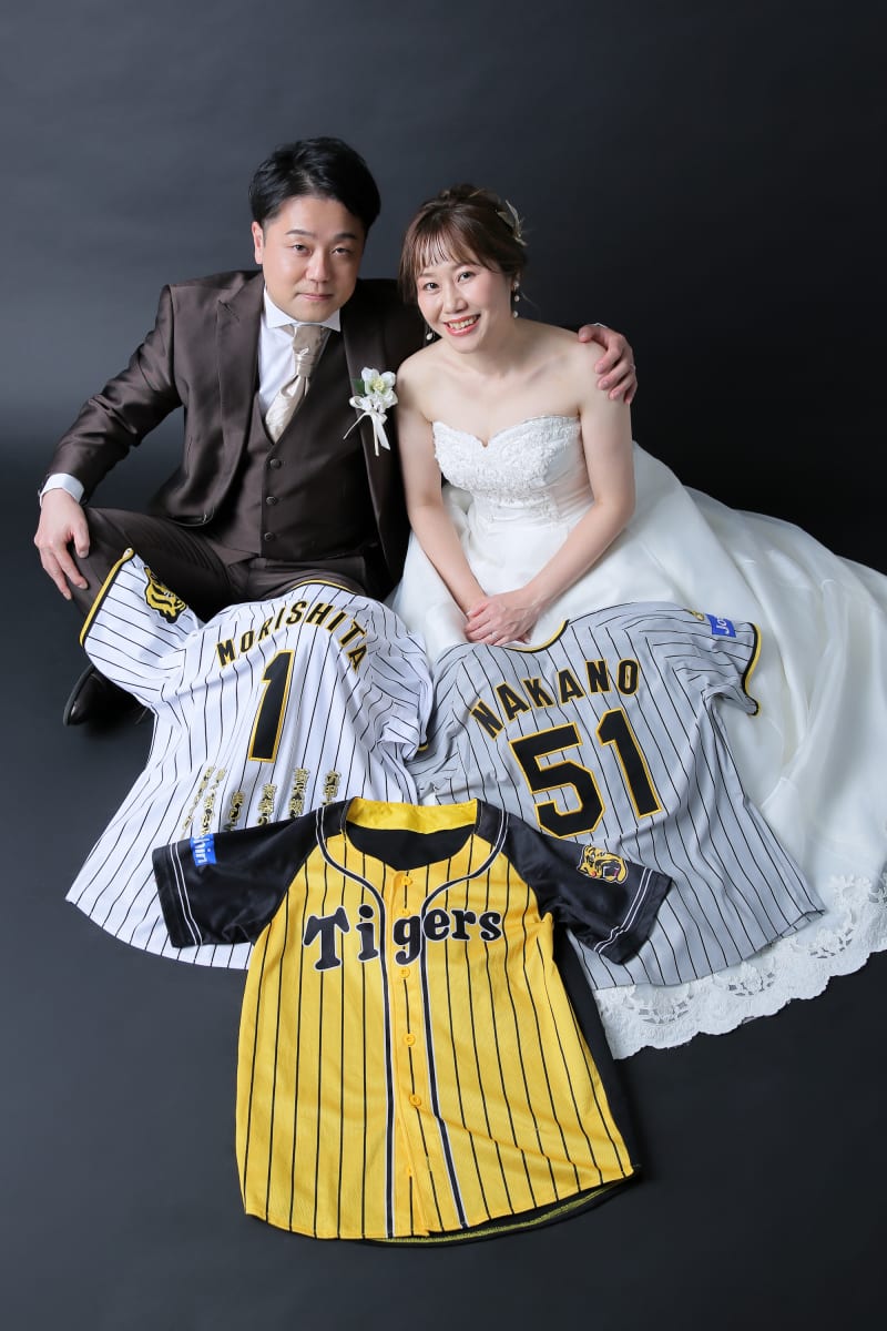 ユニホームを使った写真は好きなアイテムに囲まれながらの撮影や虎のポーズで!!