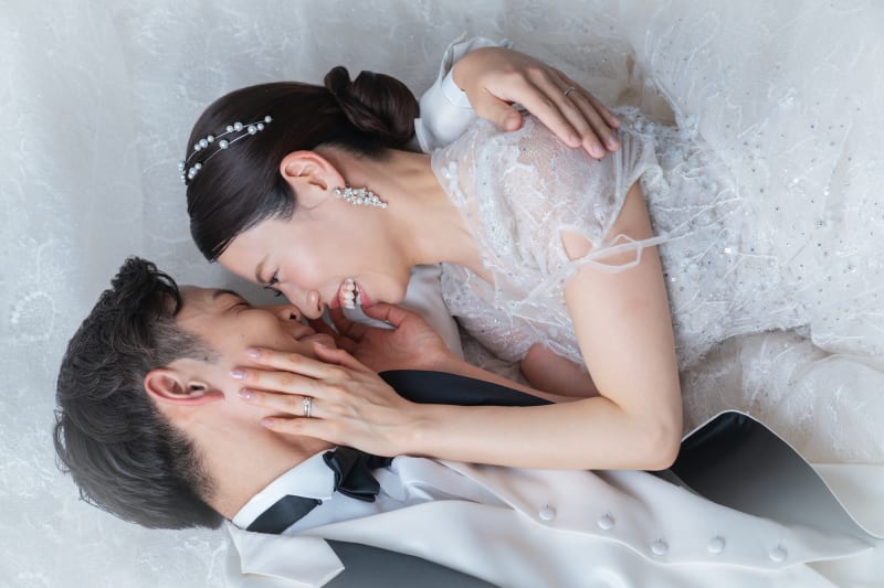 ドレスを活かしたショットや寝転びショットなど、