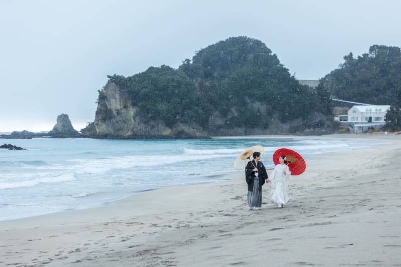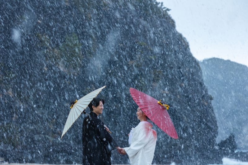 海と雪の撮影はなかなかできないので、お客様にも頑張ってもらい