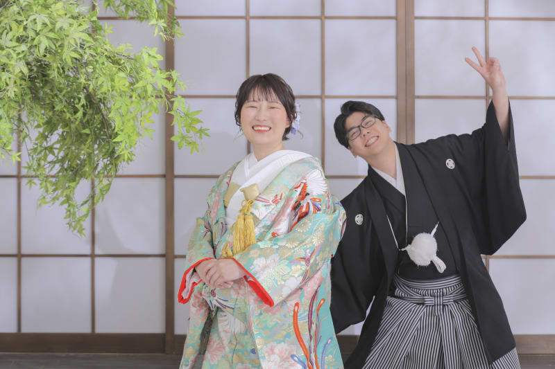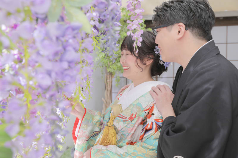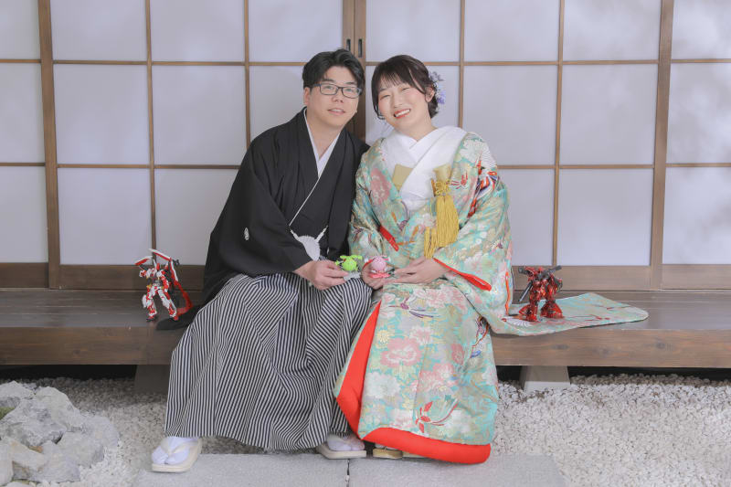 今回の撮影は、和装は屋内庭園、洋装はハウススタジオで2着の撮影に入らせていただきました。