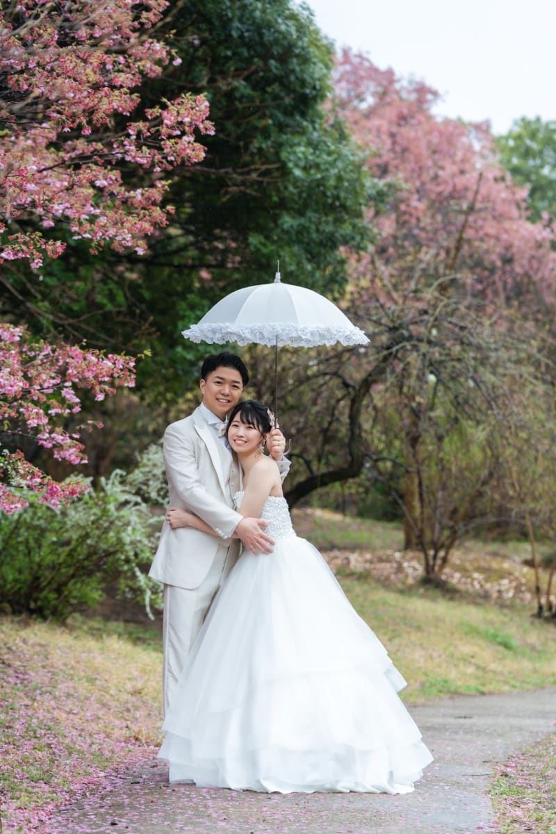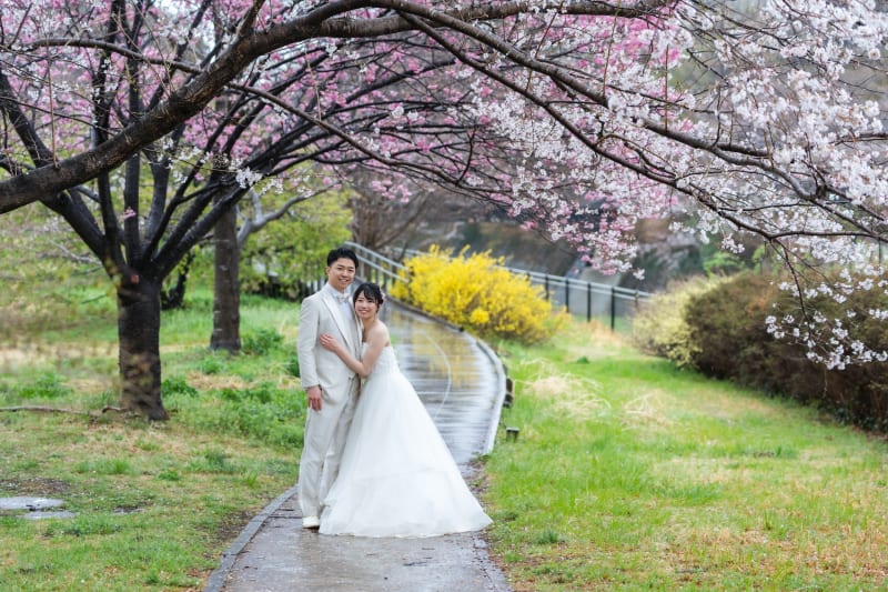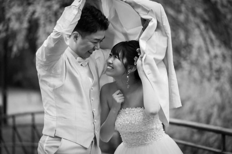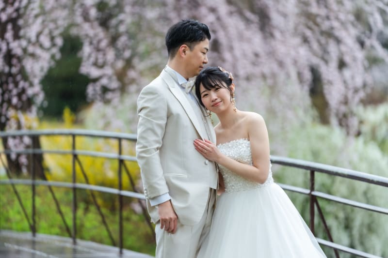 雨が降っていても、ふたりの表情や柔らかい雰囲気がとても素敵ですよね。