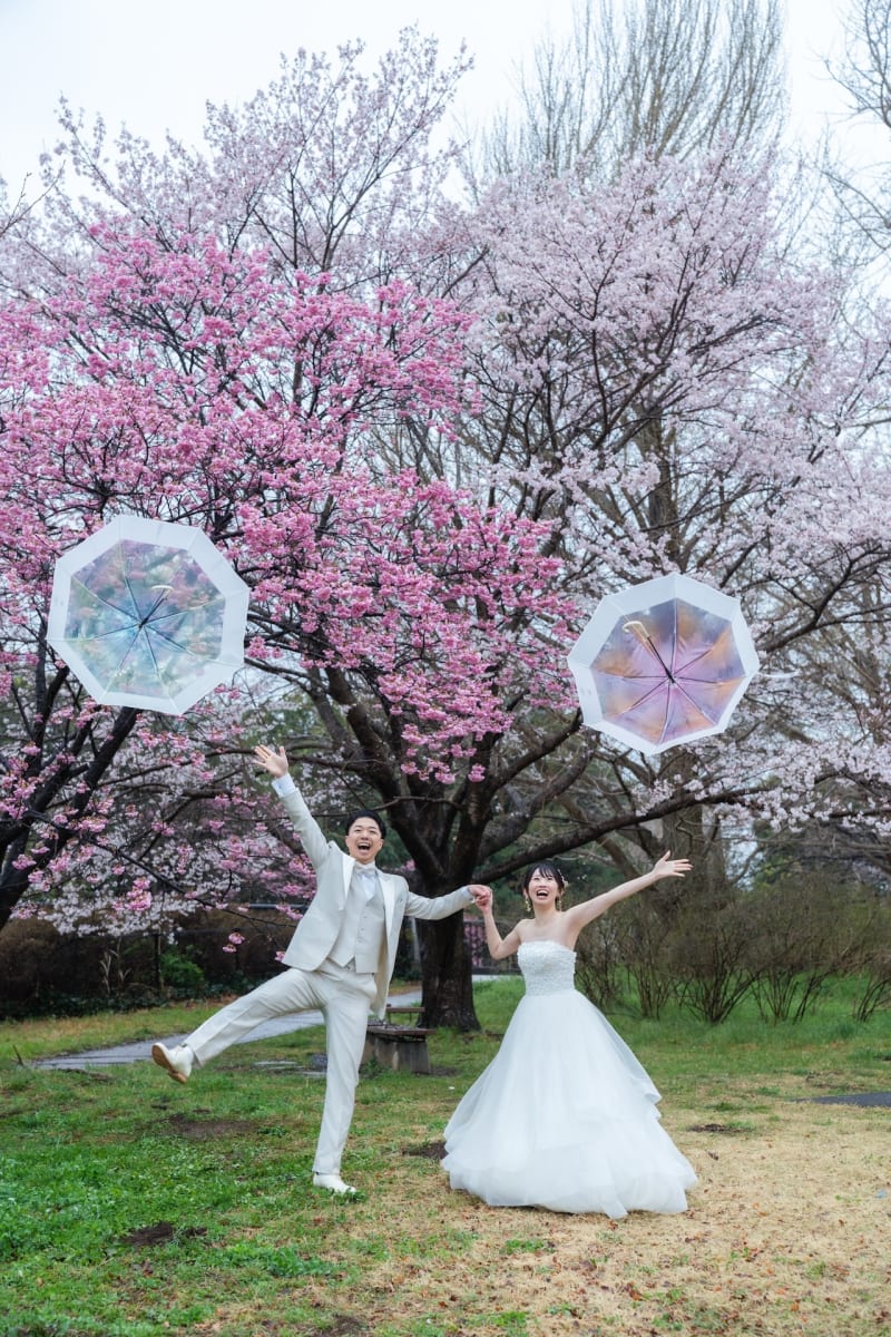 雨の日だからこそ、おふたりで選んだ傘を撮影小物として使うのも◎
