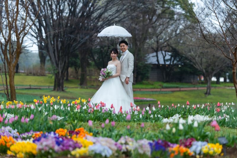 チューリップや菜の花などの色鮮やかなお花たちは、しっとりと濡れた葉や花びらが瑞々しく、晴れの日とはまた違った美しさを見せてくれます🌷🌼