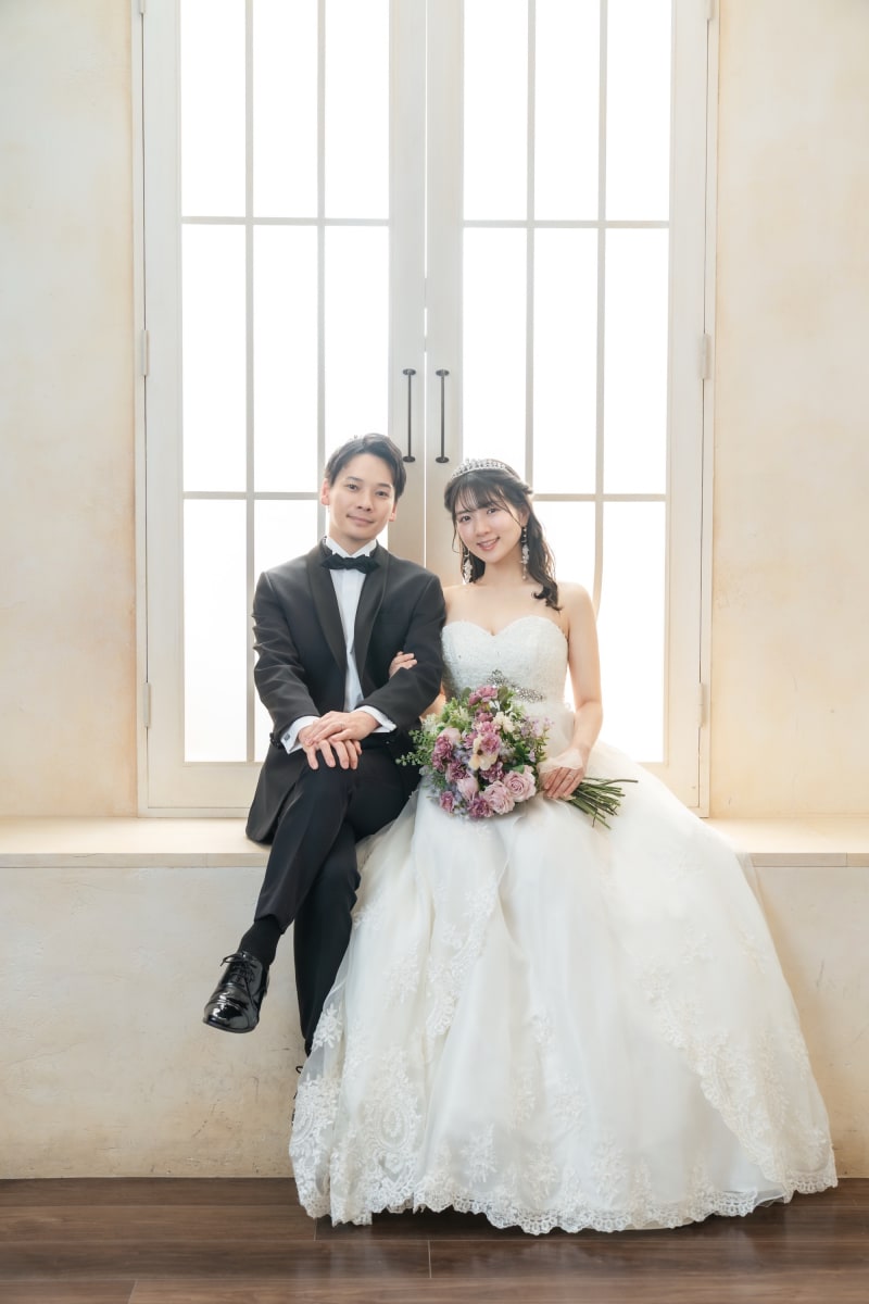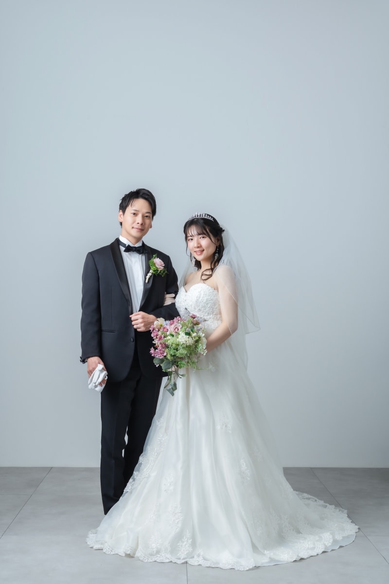 シンプルにまずは、ご親族様にもご紹介できるスタンダードな立ち姿と白壁で。