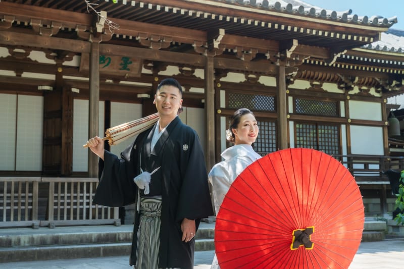門や建物を背景に、和の雰囲気もたっぷり。