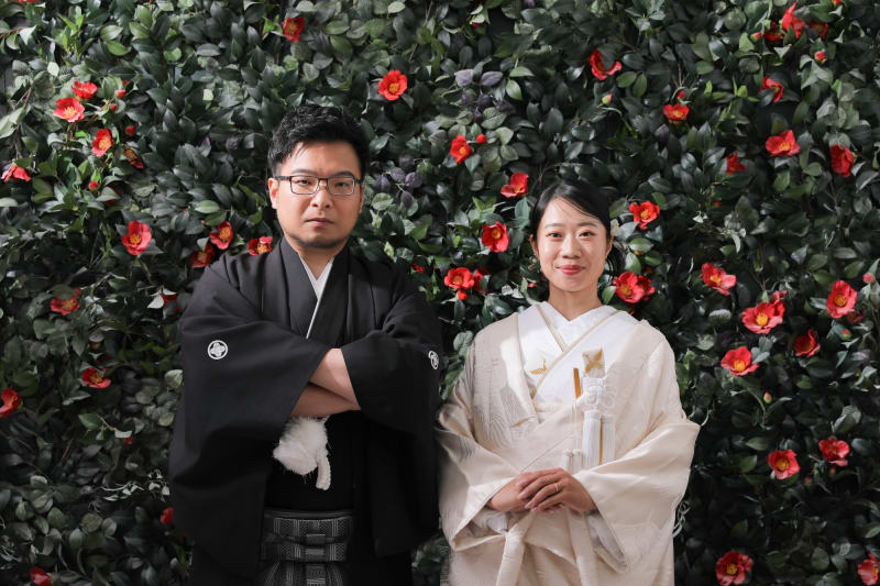 椿の花でかっこいいテイストで撮影!!表情もバッチリ決まっております!!