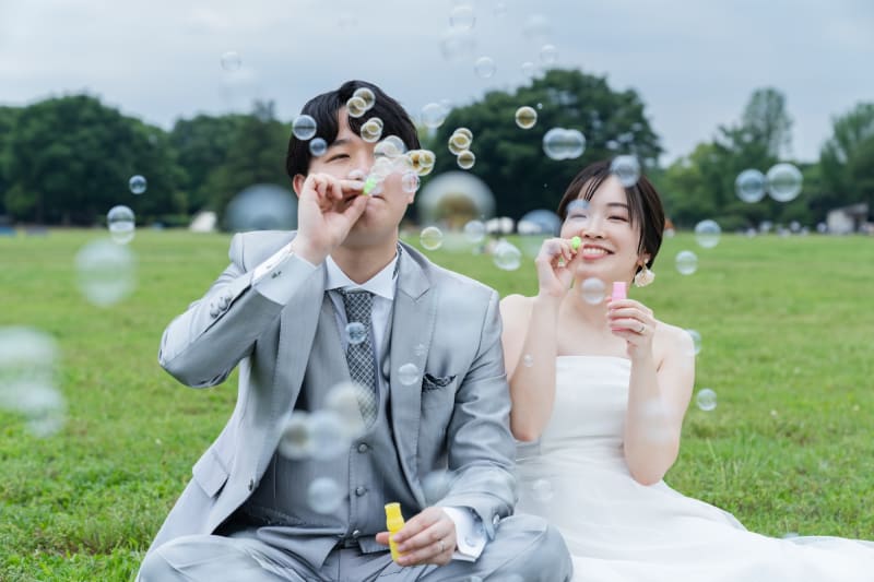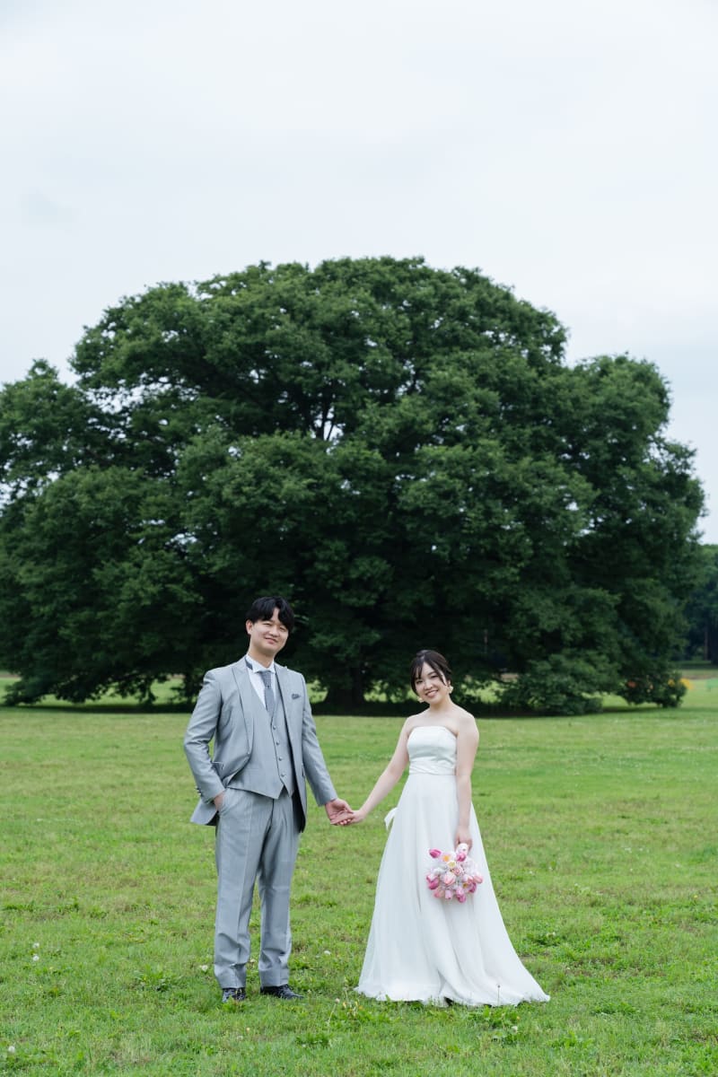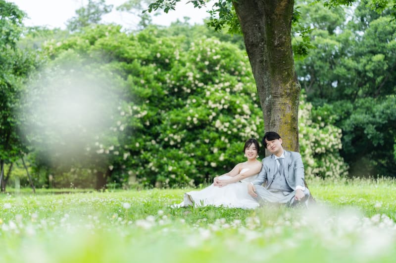 今回は芝生と新緑がきれいな公園で、フォトウェディングの撮影をしてきました。