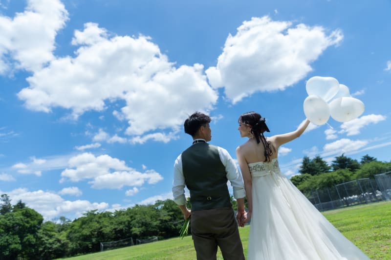 開けた緑の場所もあり、風船と空とのショットも映えます♡