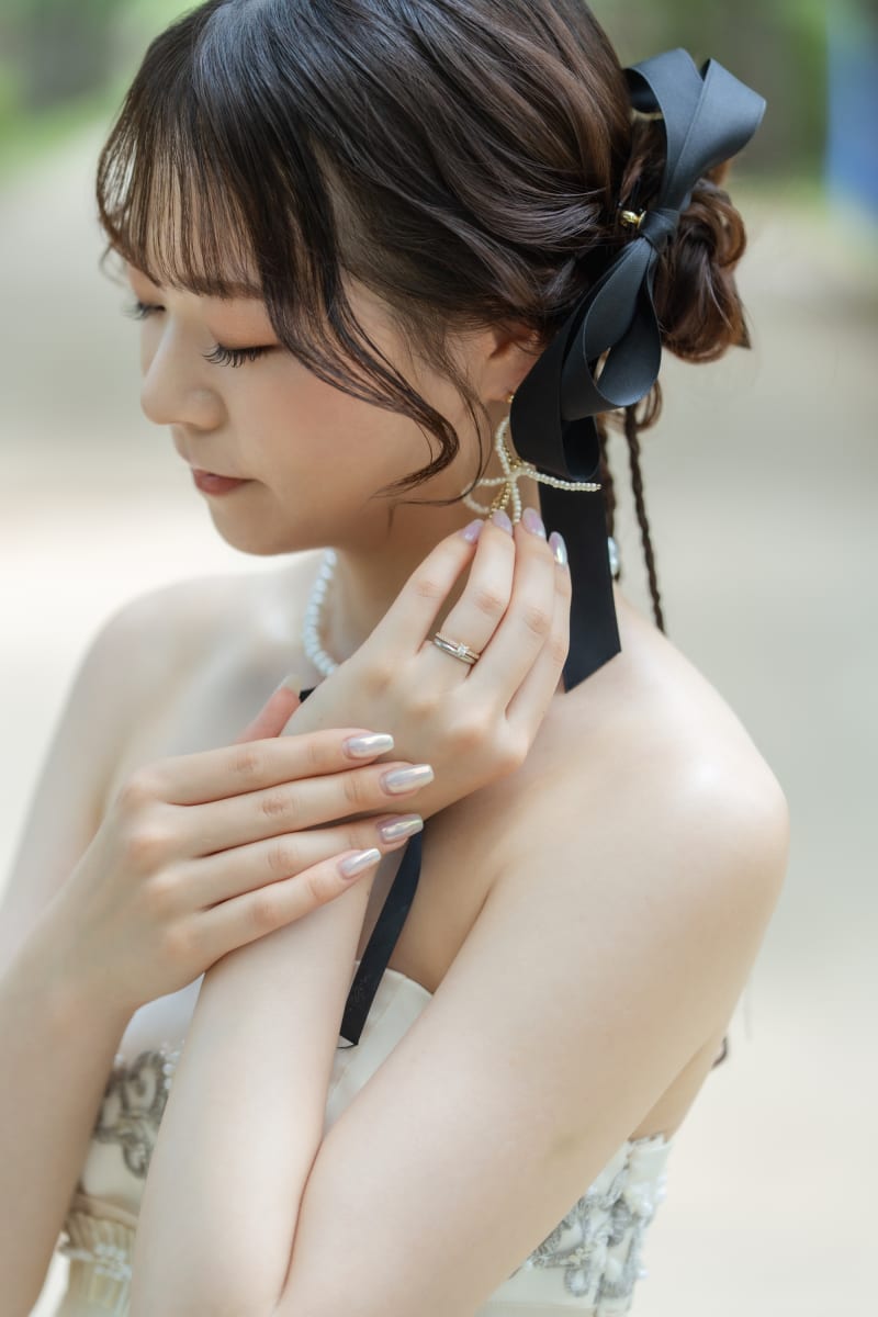 ヘアメイクもツインのお団子にタイトにおろした三つ編みがポイントです!