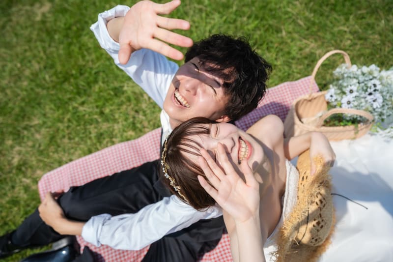 シートを引いてピクニック気分で✨太陽を浴びたショットも☀️
