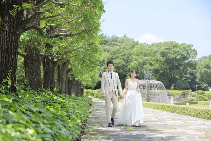 噴水の前でお散歩ショット!!自然なテイストでも撮影できます!!