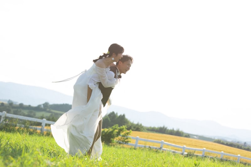 美瑛・新栄の丘でウェディングフォトロケーション撮影