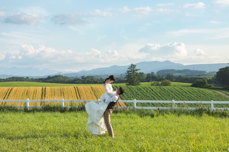 先日、北海道・美瑛町にある「新栄の丘」でウェディングフォトのロケーション撮影を行ってきました。