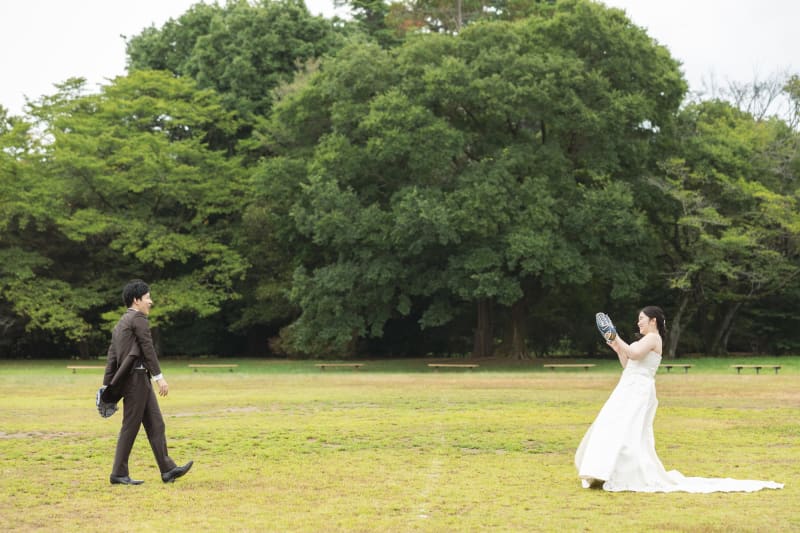 次はお二人の共通の趣味、野球観戦にちなんだキャッチボール⚾️