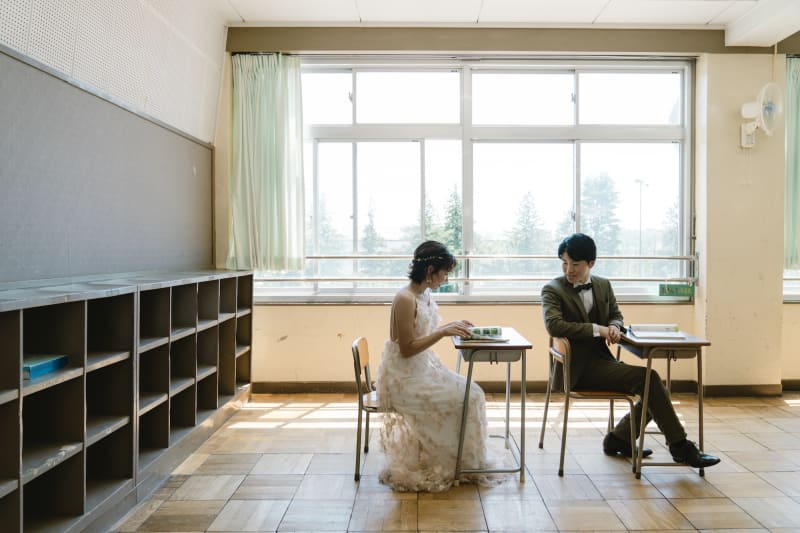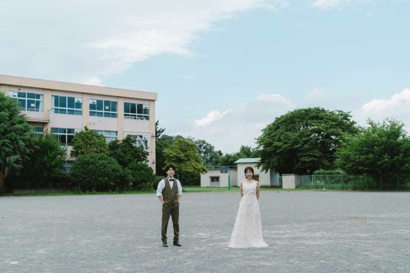 最近、卒業した小学校でウェディングフォトを撮るカップルが増えています。校舎の前、ランドセルを背負った思い出の教室、運動場など、子どもの頃の記憶が詰まった場所で、大人になった今の姿を残すことができるのはとても特別です!