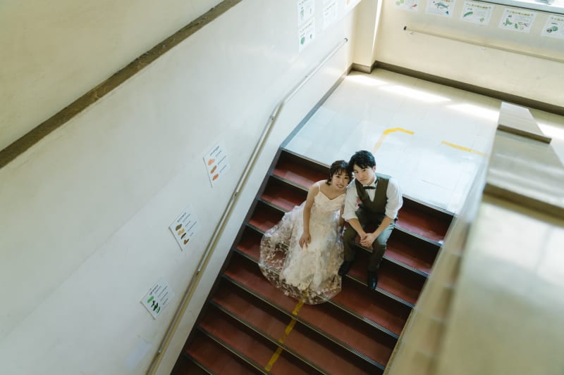 特に、同級生同士で結婚するカップルにとっては、人生の原点である小学校が舞台になることで、より深い意味を持つ写真になります。また、学校特有の温かな雰囲気やレトロな建物が、ナチュラルで素朴な雰囲気の写真を演出してくれます。