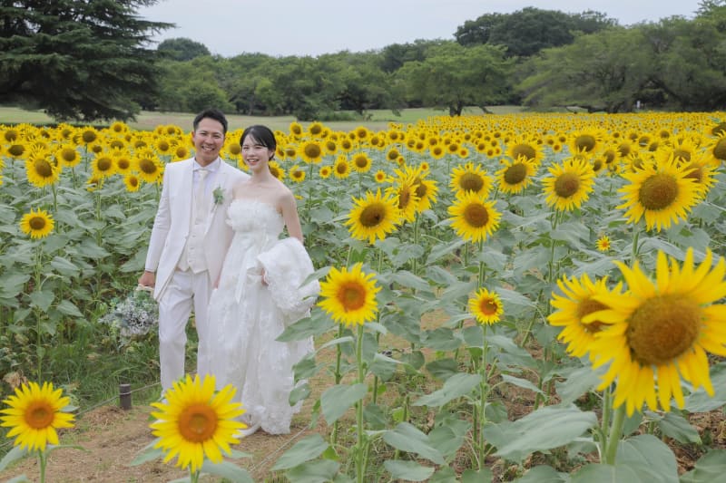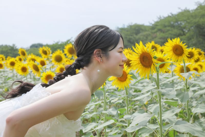 夏の昭和記念公園はひまわりが咲くので可愛く洋装で撮影し、