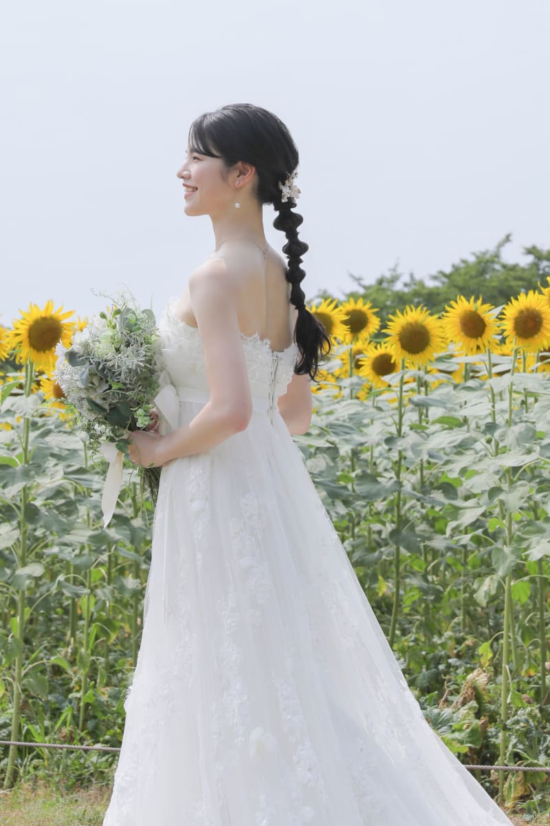 新婦様のヘアスタイルはロケーションで人気の編みおろしに