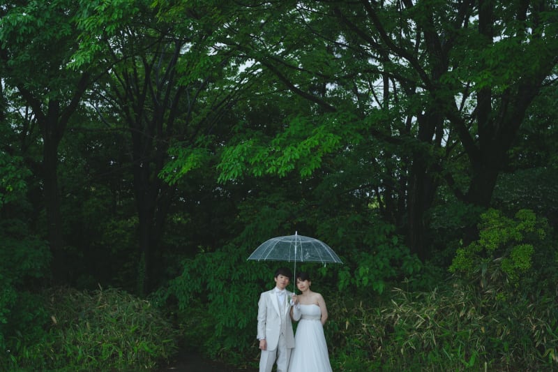 ビニール傘から見えるお二人がとってもロマンティックです✨