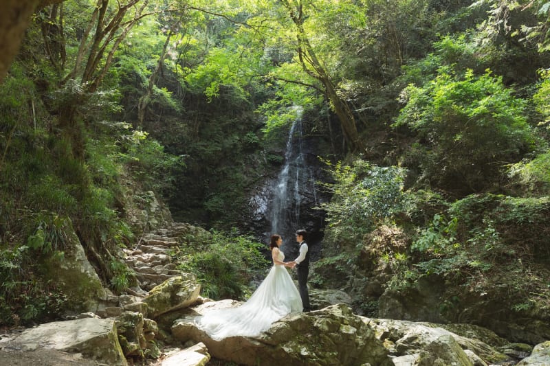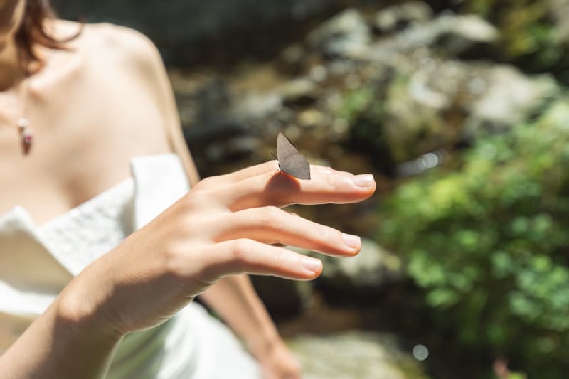 撮影中にはご新婦様の手に蝶々がとまり、一緒に撮影