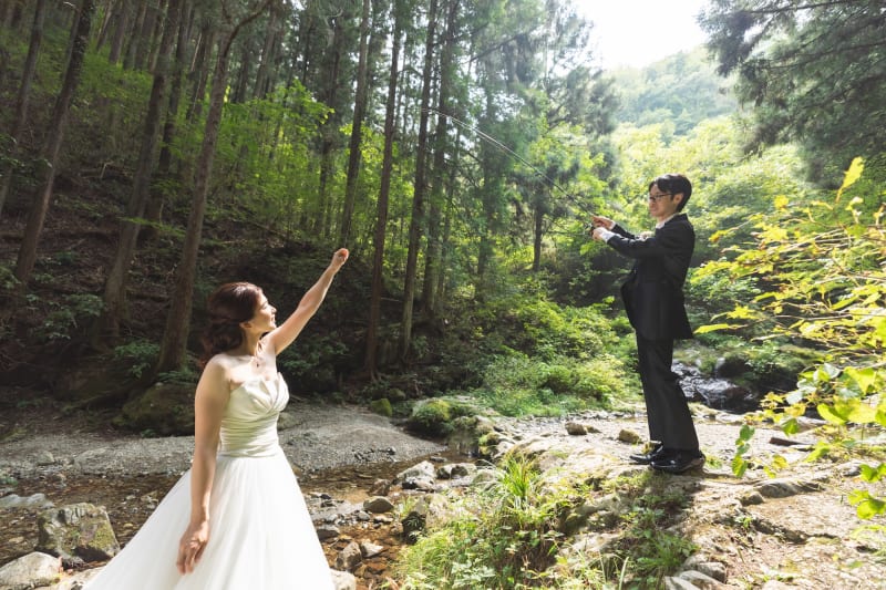 こちらはポージングを変えてご新郎様がご新婦様を釣っている姿🎣