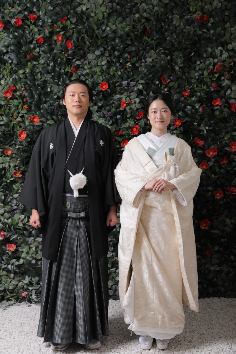 立ち姿、後ろ姿、お二人のソロ、正座を撮り結びは、お辞儀を撮りました。