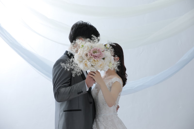 ブーケでお顔隠しのショット!!優しい雰囲気がいいですね
